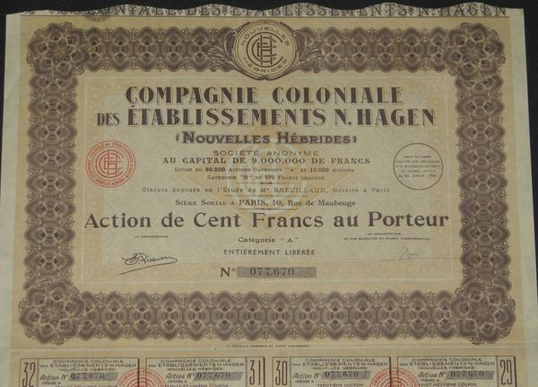 Cie Coloniale des Ets N. Hagen (Nouvelles-Hébrides) (Ac)