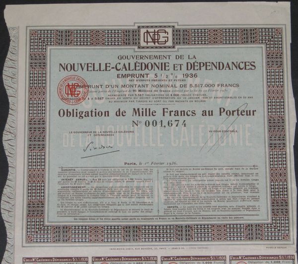 Gvt de la Nouvelle-Calédonie et Dépendances - Emprunt 5 1/2 % 1936