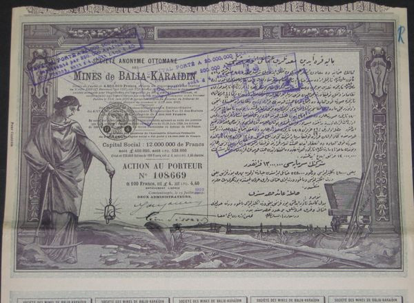 S.A. Ottomane des Mines de Balia-Karaidin - 1920 (capital 12 000 000 F)