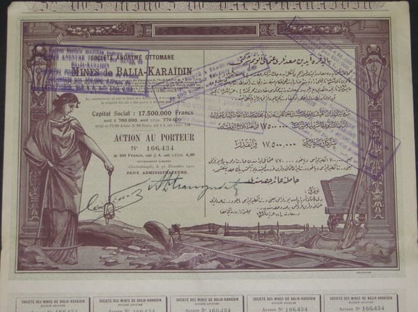 S.A. Ottomane des Mines de Balia-Karaidin - 1922 (capital 17 500 000 F)