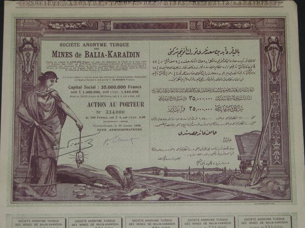S.A. Turque des Mines de Balia-Karaidin - 1926 (capital 35 000 000 F)