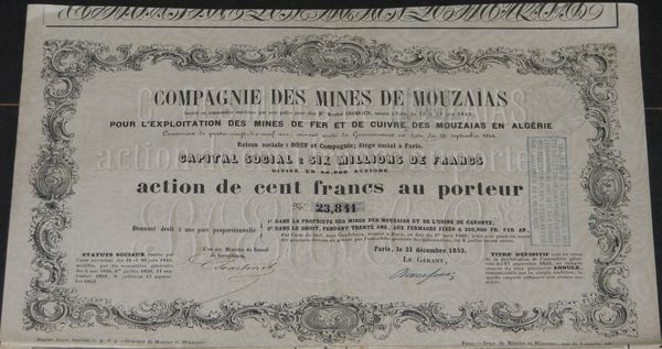 Cie des Mines de Mouzaias pour l'Exploitation des Mines de fer et de Cuivre des Mouzaias en Algérie
