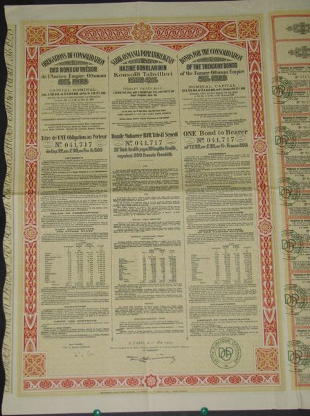 Obligations de Consolidation des Bons du Trésor de l'Ancien Empire Ottoman 5 % 1928