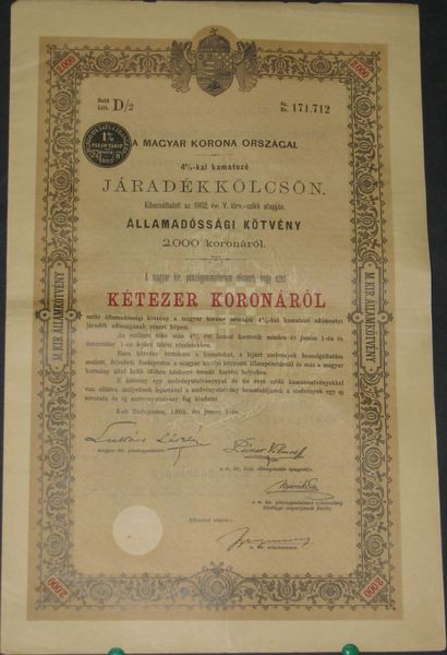Royaume de hongrie - Emprunt en Rentes 4 % 1902 (2000 Cr)