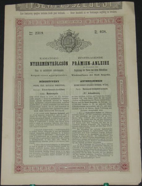 Prämien-Anleihe - Wiederaufbaues des Sdatd Szegedin