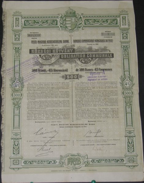 Banque Commerciale Hongroise de Pest (4 % 500 F)