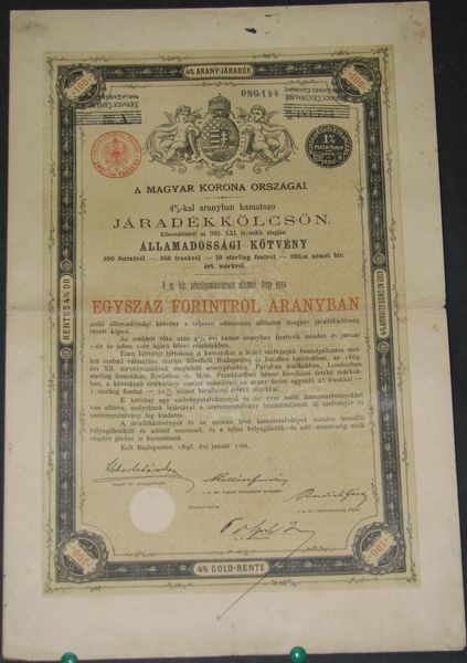 Emprunt 4 % du Royaume de Hongrie payable en Or (100 forintos)