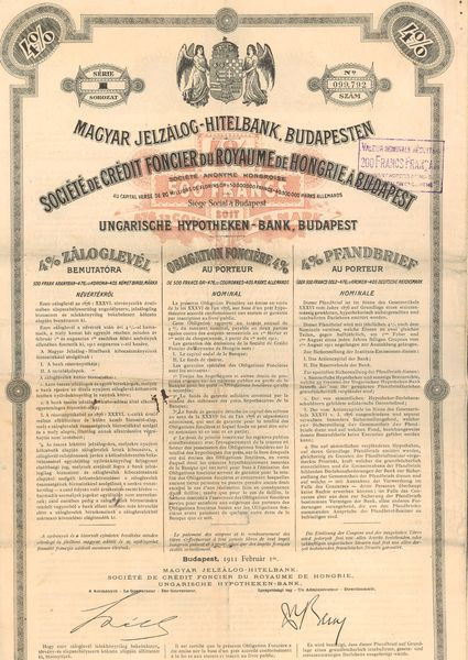 Sté de Crédit Foncier du Royaume de Hongrie à Budapest (Obl Foncière 4 % 500 F)
