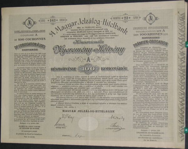 Sté de Crédit Foncier du Royaume de Hongrie (Obl à lots convertie)