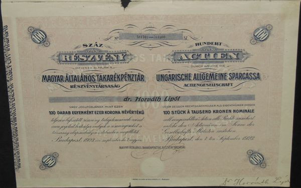 Ungarische Allgemeine Sparcassa - Banque Commerciale Triestina Trieste (100 Act)