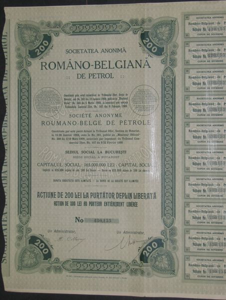 Româno-Belgiana de Petrol (1 Act 200 Lei)
