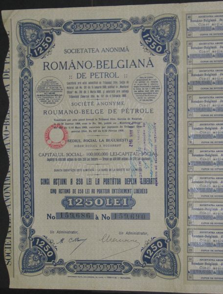 Româno-Belgiana de Petrol (5 Act 250 Lei)