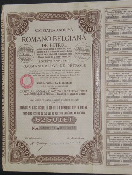 Româno-Belgiana de Petrol (25 Act 250 Lei)