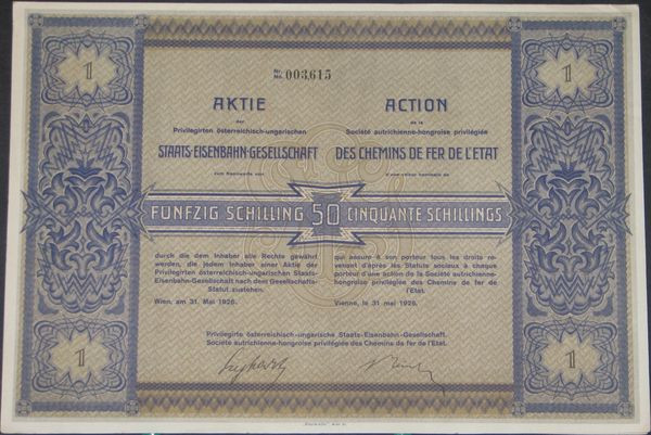 Sté Autrichienne-Hongroise privilégiée des Chemins de Fer de l'Etat (bleue)