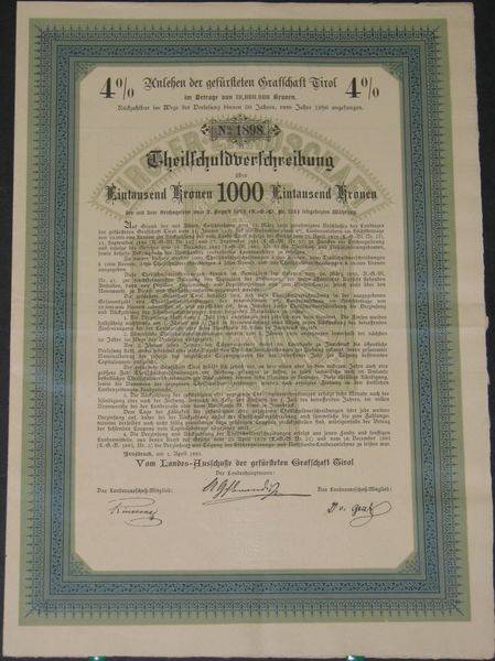 Anlehen der gefürsteten Grafschaft Tirol 4 %