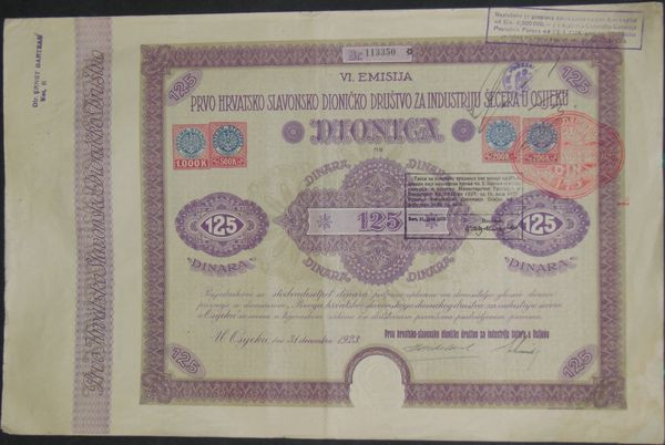 Prvo Hrvatsko Slavonsko Dionicko Drusivo za Industriiu Secera u Osijeku