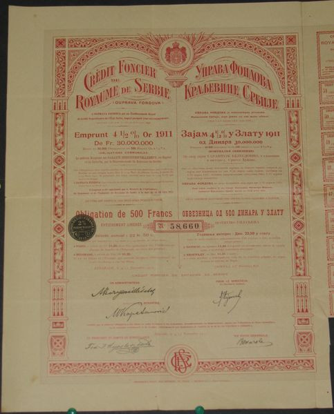 Crédit Foncier du Royaume de Serbie - Emprunt 4 1/2 % Or 1911
