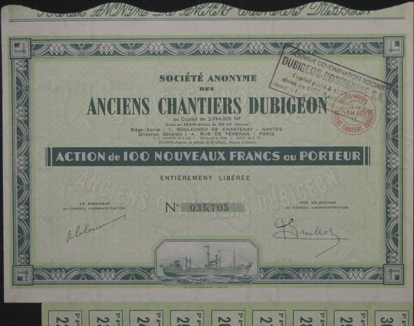 S.A. des Anciens Chantiers Dubigeon - 100 NF