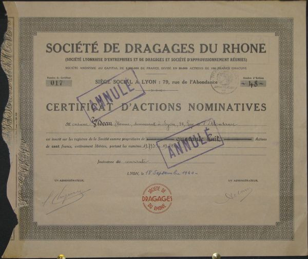 Sté de Dragages du Rhône (Sté Lyonnaise d'Entreprises et de Dragage et Sté d'Approvisionnement réunies)