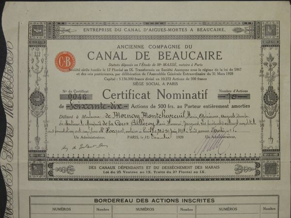 Ets du Canal d'Aigues-Mortes à Beaucaire - Anc Cie du Canal de Beaucaire (Certif