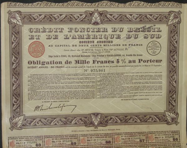 Crédit Foncier du Brésil et de l'Amérique du Sud (Obl 1000 F 5 % 1930)(modèle 2)