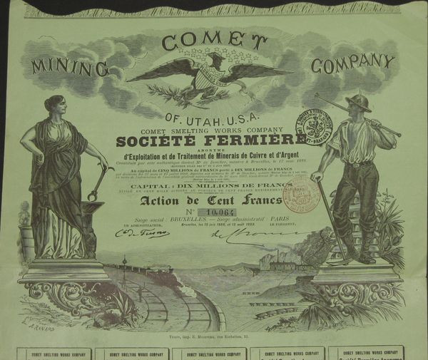 Comet Mining Cy Of UTAH U.S.A. - Mines de Cuivre Argentifère Comet et Morrisson (1 Act 100 F)