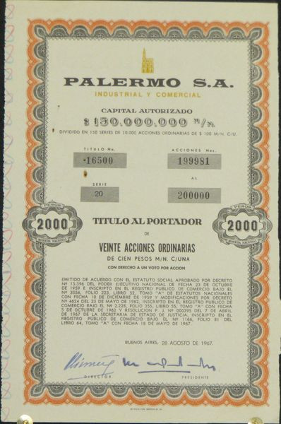 Palermo S.A. - Industrial y Comercial (20 Act 100 Pesos)