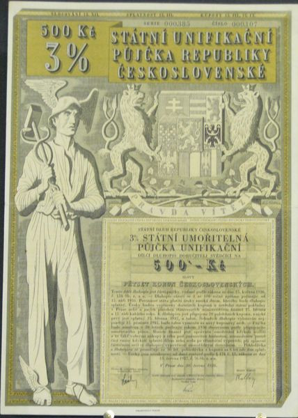 500 Kc 3% Statni Unifikacni Pujcka Republiky Ceskoslovenské
