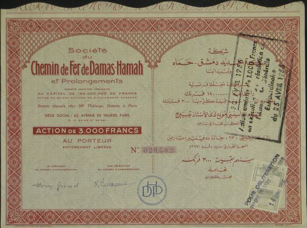 Sté du Chemin de Fer de Damas-Hamah et Prolongements (rouge)