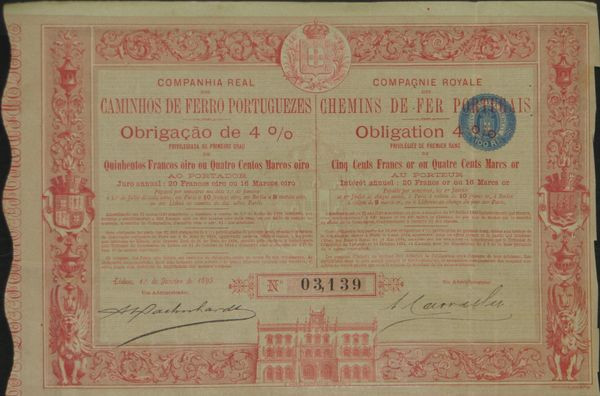 Cie Royale des Chemins de Fer Portugais (Obl 4 % 500 F Or)