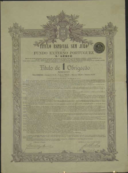 Titulo Especial Sem Juro do Fundo Externo Portuguez 3 % 3° série