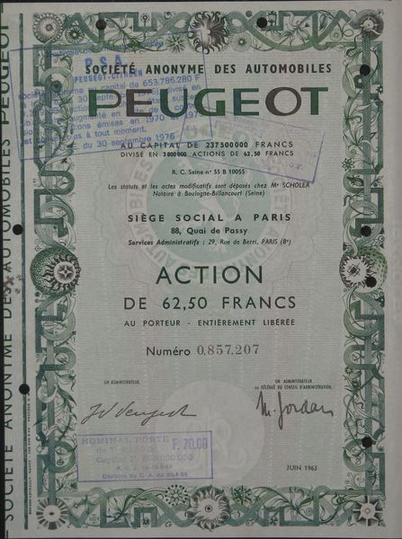 S.A. des Automobiles Peugeot (Act 62.50 F)