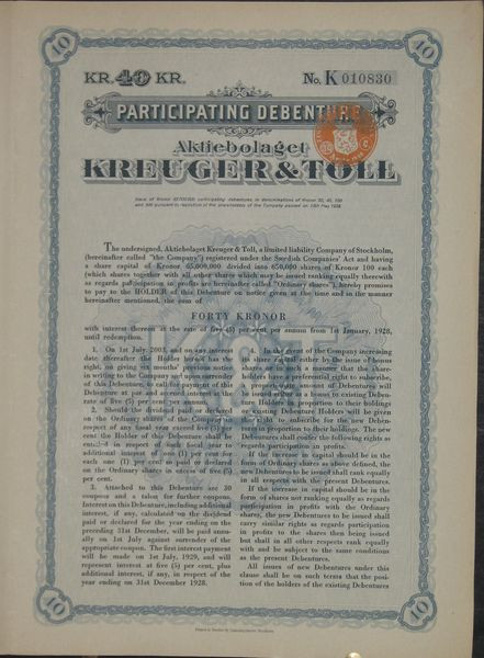 Aktiebolaget Kreuger & Toll (40 Kr)
