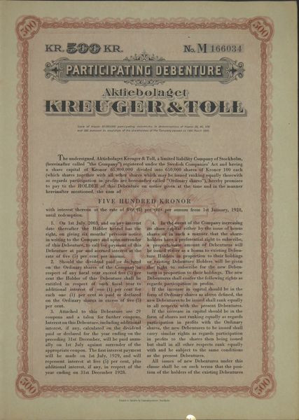 Aktiebolaget Kreuger & Toll (500 Kr)