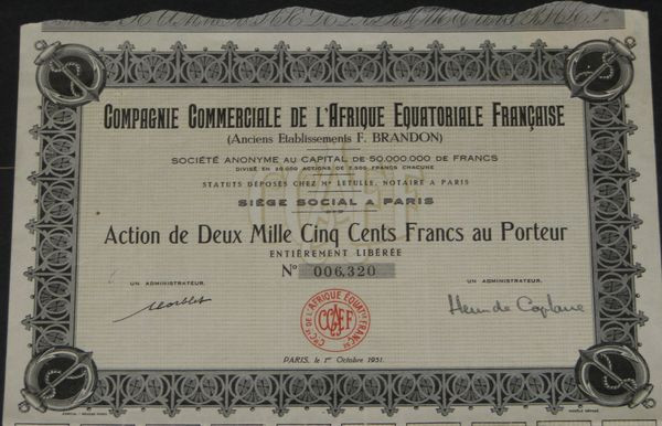 Cie Commerciale de l'Afrique Equatoriale Française (Anc Ets F. Brandon) (Act 2500 F)