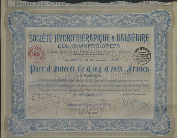 Sté Hydrothérapique & Balnéaire des Champs-Elyséées