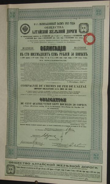 Cie du Chemin de Fer de l'Altaï - Emprunt-Obligations 4 1/2% 1912