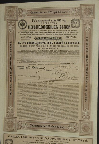 Sté des Embranchements de Chemins de Fer - Emprunt-Obligations 4 1/2% 1913