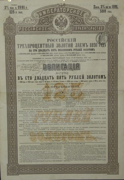 Emprunt Russe 3 % Or de 1891 - 125 Rbl Or