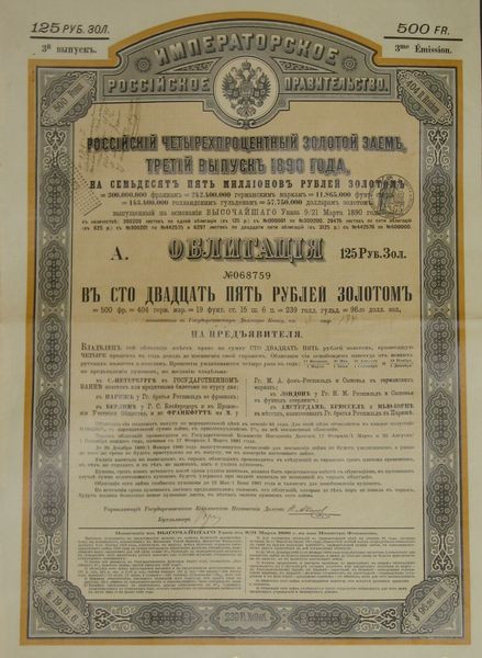 Emprunt Russe 4 % Or de 1890 - 125 Rbl Or - 3ème Emission