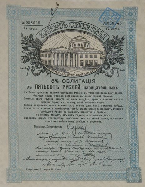 Russia 5 % Freedom Loan (Kerenski Loan) - 500 Rbl
