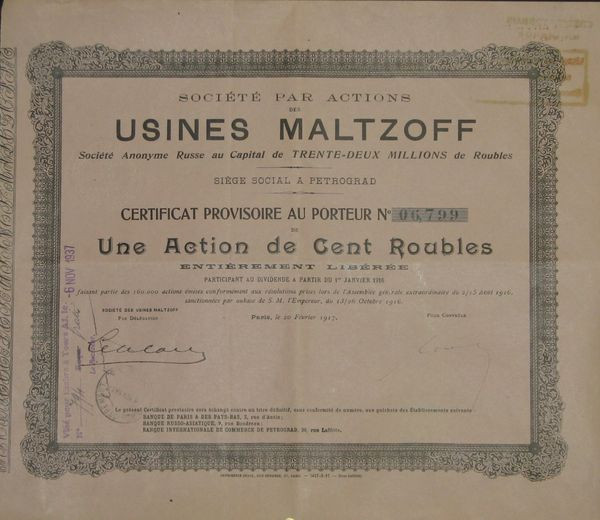 Sté par actions des Usines Maltzoff - Certif