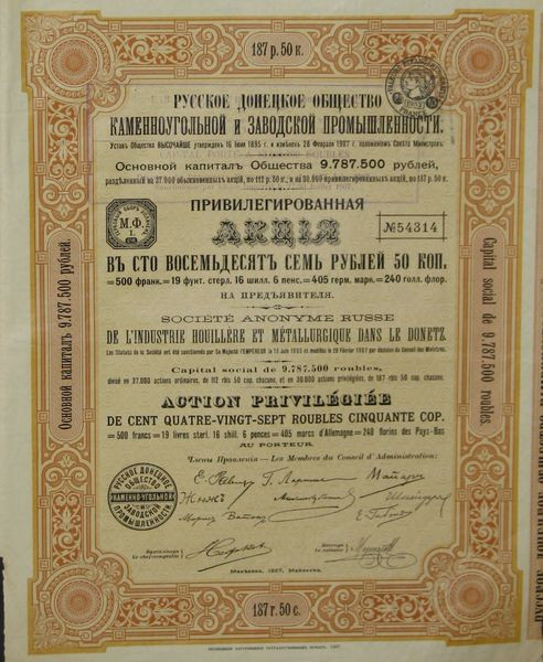 S.A. Russe de l'Industrie Houillère et Métallurgique dans le Donetz - 1907