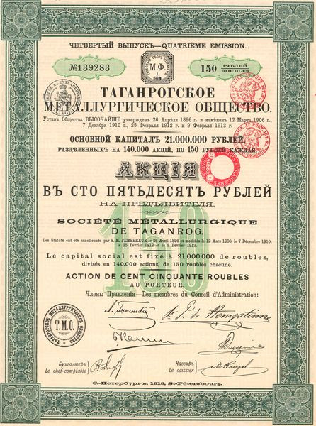 Sté Métallurgique de Taganrog (Act 150 Rbl)