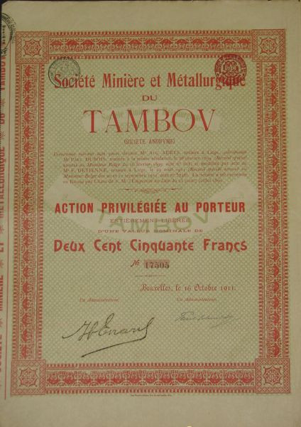 Sté Minière et Métallurgique du Tambov (Act Privil)