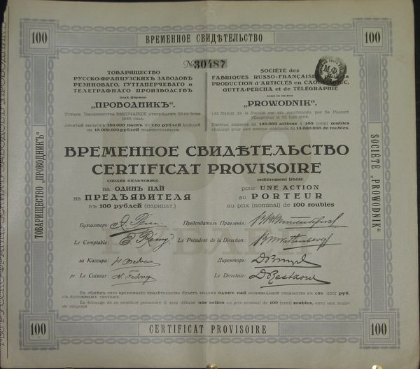 Sté des Fabriques Russes-Françaises pour la Production des Articles de Caoutchouc de Gutta-Percha et de Télégraphie sous la rais
