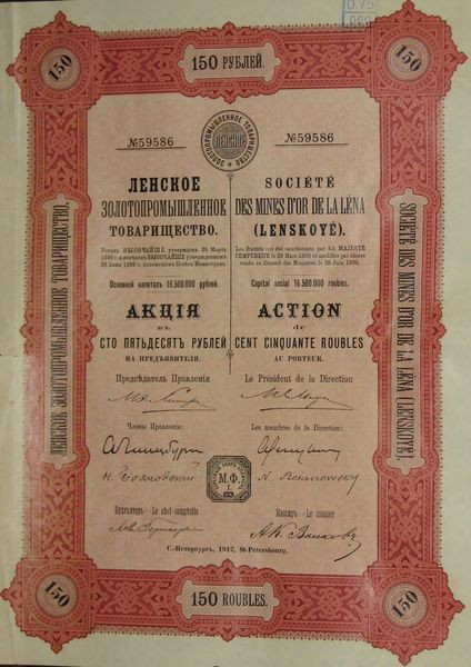 Sté des Mines d'Or de la Léna (Lenskoyé)