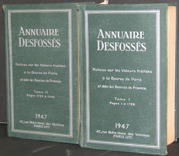 Annuaire Desfossés - Notices sur les Valeurs traitées à la Bourse de Paris et dans les Bourses de Province - Tomes 1 et 2 - 1947