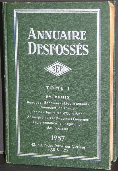 Annuaire Desfossés - Emprunts - Ets Financiers de France et des Territoires d'Outre-Mer - Tome 1 - 1957 - 1103 pages env