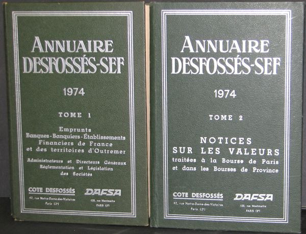 Annuaire Desfossés-SEF - Notices sur les Valeurs traitées à la Bourse de Paris et dans les Bourses de Province - Tomes 1 et 2 -